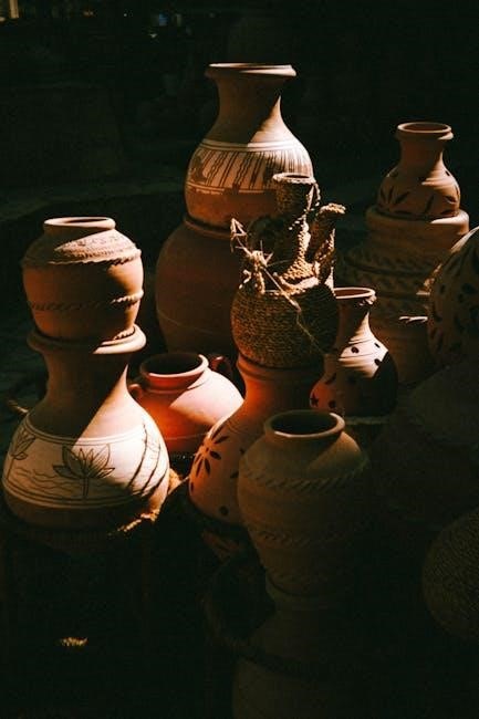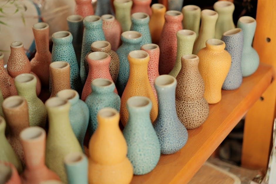 For stubborn dirt‚ a soft-bristled brush can be used cautiously. Rinse thoroughly with clean water and immediately dry with another soft cloth. Never submerge the vase completely in water. Avoid harsh chemicals or solvents‚ as they can react with the pottery’s composition.